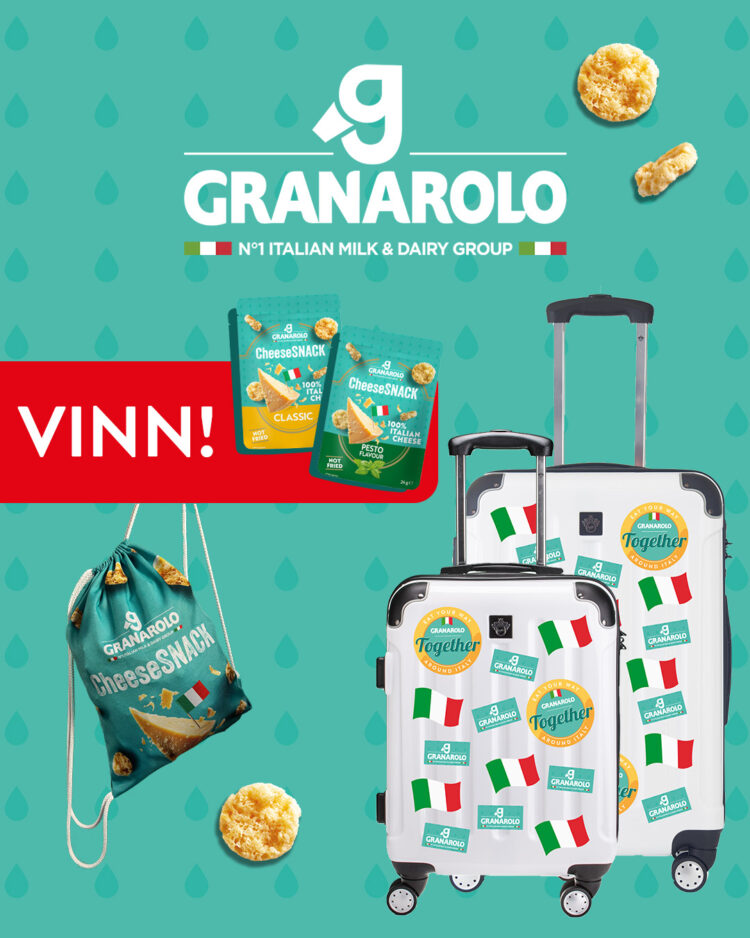 Vinn Granarolo kabinväska fylld med Cheese Snack + matchande resväska